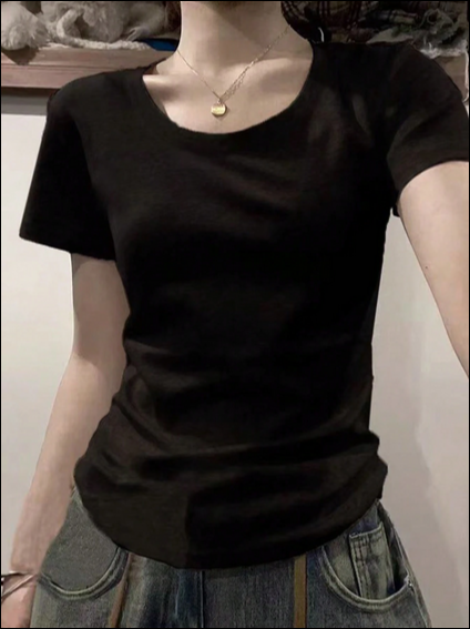 เสื้อยืดแฟชั่นผู้หญิง สีพื้นคอกลมแขนสั้น ใส่เป็นเสื้อคลุมยามฤดูร้อน